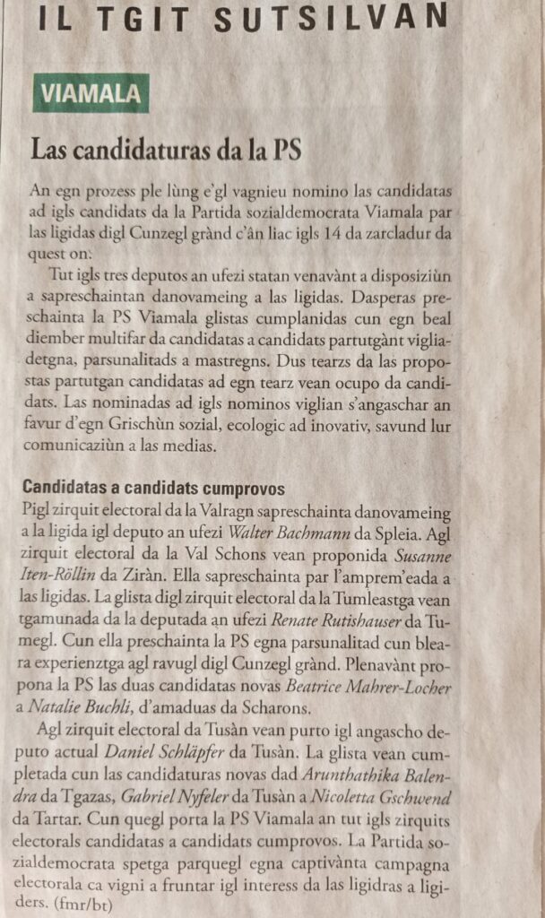 Las candidaturas da la PS Viamala, La Quotidiana